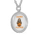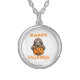 Funny Cute Sloth Holding Pumpkin Silver Plated Necklace