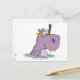 funny cute snorkeling swimming hippo postcard
