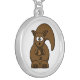Funny Cute Squirrel Illustration Silver Plated Necklace