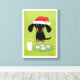 Wiener Dog Christmas. Funny art illustration of a black and tan Dachshund wearing a Santa hat sitting in front of a glass of milk and a plate of frosted holiday cookies. A fun canvas print for anyone who loves a Doxie. Visit Jenn’s Doodle World for even more products featuring this original weenie dog design. ©Jenn Inashvili