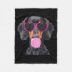 Funny Dachshund Wearing Gles And Blowing Nk Bubble Fleece Blanket