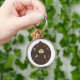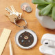 This cute keychain features a cartoon of a Dad who is a coffee monster. His face is inside a big droplet of coffee and he has a creepy tongue and is starting to go bald. Sugar, milk, coffee and a spoon surround him, everything he needs for his favorite drink. The light brown text says, “Dad loves coffee”.