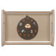 This awesome serving tray features a cartoon of a Dad who is a coffee monster. His face is inside a big droplet of coffee and he has a creepy tongue and is starting to go bald. Sugar, milk, coffee and a spoon surround him, everything he needs for his favorite drink. The light brown text says, “Dad loves coffee”.