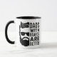 This funny mug is the perfect gift for the bearded dad in your life! The design features a black graphic of a dad sporting sunglasses and beard, accompanied by the quote, "Dads with beards are better."