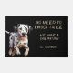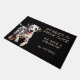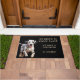 "No need to knock twice, We have a Dalmatian" declares this funny door mat. The text is in pale tan at the right side, while an picture of a adorable Dalmatian dog is at the left. Everything is placed on a black background.