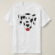 Silly looking cartoon drawing of a dog(Dalmatian) with his tongue sticking out. Colors used are black, white and red. Black spots cover the dog's ears and face. His tongue is, of course, red. Press customize it to change background color on most products.