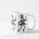 Start your day with a touch of whimsy and patriotism with our dancing skeleton coffee mug. Featuring a lively skeleton dressed in full American attire, complete with a star-spangled top hat and a stylish cane, this mug brings a fun twist to your morning coffee or tea. Perfect for those who love unique and eye-catching designs. Celebrate your love for the red, white, and blue with every sip.
