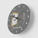 Whimsical skeleton wearing a top hat with a cane dancing in a mirror wall clock. Replace your text in the template, or delete for no text. Click on Customize to add text and change font size, style, and color. Please visit my store at Smilin' Eyes Treasures to see more flower, animal, nature, and digital art design cards and gifts for home and office. Links to all of my stores are located on my Profile page.