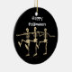 The front of the ornament says, "Happy Halloween." You can change this in the template if you want. Add a name or message to the back to create a personalized gift. Click the customize button to change the font, font color, or background color. Delete it to leave the back of the ornament blank.