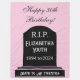 Surprise a special woman with this Death to My Youth Milestone Birthday Fleece Blanket, a cozy and hilarious gift for those with a love of dark humor. Featuring a soft blush pink background, the blanket displays 'Happy Birthday!' in beautiful script calligraphy. Below, a black tombstone reads 'R.I.P. [Person's Name]'s Youth [Year of Birth - Milestone Year]' and 'Death to My [Twenties, Thirties, Forties, etc.],' adding a funny, morbid touch. All text is fully customizable to suit any milestone (30th, 40th, 50th, 60th, etc.)