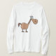 Layer up with a touch of humor in this funny horse long sleeve t-shirt for women. Featuring a derpy brown pony with a goofy expression, this comfortable cotton tee is perfect for breezy days at the stable or casual outings. This whimsical equestrian top makes a great gift for horse lovers who appreciate a silly cartoon style while staying cozy. Whether you are grooming your stallion or running errands, this lighthearted animal graphic is sure to spark a conversation.