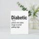 Funny Diabetic type 1 Definition Awareness Gift Postcard