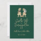 This fun Jurassic dinosaur wedding “Save the Date” invitation is perfect for couples looking to add a fun, dinosaur-themed twist to their wedding save the date Invitation announcement. Featuring charming watercolor illustrations of a funny dino T-Rex bride and groom in brown beige hues on a stylish dark green background, this Jurassic era design captures the playful spirit of your big day. The modern typography script adds a touch of elegance while maintaining a lighthearted feel. Easy to customize with your names, wedding date, this unique invitation is sure to delight your guests. Original artwork by the talented Catherine Sweetman. Perfect for a roaring good time!