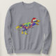 Liven up the holidays with this Funny T. rex Santa Christmas Sweatshirt featuring a scary-but-cute colorful psychedelic Tyrannosaurus rex in a festive Santa hat. Perfect for adding prehistoric humor to your Christmas celebrations, this quirky dinosaur design is sure to get laughs at parties, family gatherings, or the office.