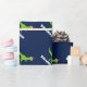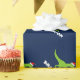 Cute dinosaur Christmas wrapping paper for kids. Green t rex dinosaur with Santa hat giftwrap personalized with childs name. Funny prehistoric dinasaur gift wrap design for little boys Holiday presents. Make one for son, grandson, new baby, grandchild. Wild Pre historic t-rex animal cartoon illustration for children. Fun Santa Clause Tyrannosaurus rex. Custom color background ie blue.