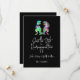 The sleek black background paired with crisp white modern typography and elegant script accents adds a sophisticated contrast that makes the bright watercolor dinosaurs pop. A perfect blend of fun and style, this design celebrates love with a prehistoric twist