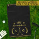 These custom bottle coolers make the perfect gift for a doctor who loves to play golf. Personalized with the doctor's name and initials, the design also includes golf clubs, balls, a crown, a laurel wreath and the phrase "Turn Your Head and Golf." The design is made in all white on a black background. Customize / Personalize Further to change the background color. Use the easy templates to add your text. The monogram repeats on the back.