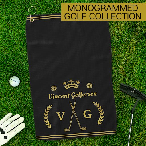 These golf towels make the perfect gift for a doctor who loves to play the game. Personalized with the doctor's name and initials, the design also includes golf clubs, balls, a crown, a laurel wreath and the phrase "Turn Your Head and Golf." The design is made in all black and white.