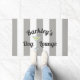 A whimsical "Dog Lounge" door mat personalized with your dog's name lets everyone know who rules the house. A martini glass graphic and wide awning stripes in taupe (greyish beige) complete the design. You can also change the color of the stripes by choose "customize further" and select a different background color.