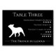 A funny and unique table number. Perfect for pet and dog lovers, this black and white monochrome table number is one of a collection of multiple dog breeds. The card reads the table number, followed by The French Bulldogs, and a white outline image of a French bulldog. As a joke about the guests, four dog traits are listed including friendliness toward strangers, drooling potential, tendency to bark and howl and playfulness, alongside a rating out of five stars. The table card is suitable for a wedding, party, or any other event that requires a seating plan.