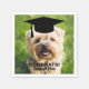 Celebrate your graduate with these funny custom paper napkins featuring a cute dog wearing a black graduation cap. Personalize by adding the graduation year or change the dog photo to your own. A PAWfect touch for your dog lover's graduation party.