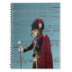 Funny digital collage of a funny dog animal dressed as a Scottish pipe major wearing a traditional red Scottish tartan vintage kilt photographed at a highland games in Scotland on a blue background with music score musical notes. Visit the VINTAGE PRINTS STORE for matching fun eccentric cartoon character animals.