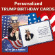 Funny DONALD TRUMP 50th BIRTHDAY CARD with TRUMP dressed as UNCLE SAM. All text and fonts can be modified.