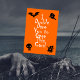 Funny Halloween card shows four black silhouette icons of a scary bat, ghost, tree stump, and skull, with the words "I Double Dare You to Open This Card" in a distressed spooky white font. The background color is orange. You'll have to open the card to see what's inside.