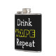This small flask is really cute. Good for taking water or other liquids with you. My only complaint is the top is somewhat difficult to get back on after you screw it off. The printing is really good on the flask. My design came out just right!