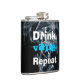 Well made flask, a little better than I had expected. Flask came in clear plastic box which gave it a nice presentation when I took it out of the zazzle packaging. Image is not printed on flask but on sticker. Don't know how this will hold up I haven't used it yet. This would make a Great gift! I plan to purchase more for friends! Cheers. I thought a little brighter than computer. Very crisp, writing wasn't