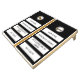 Natural Wood Cornhole Set, Yellow and Purple bags