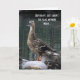 This funny birthday card says, "Birthdays just aren't the same anymore when...everyone yells, "DUCK!!!" when you blow out your birthday candles! Happy Birthday." This card shows a beautiful female mallard standing on a white rock near the edge of a pond.