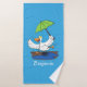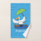 Funny duck with umbrella dancing cartoon bath towel set