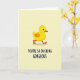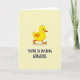This card features a bright yellow duckling centered on a soft, buttery background that feels warm and inviting. The duckling has a rounded shape, one large black eye, a rosy pink cheek, and a vivid orange beak and feet that add contrast and charm. Its gentle expression gives the character an innocent, happy look. Beneath the illustration, bold lettering reads, “YOU’RE SO DUCKING GORGEOUS,” offering a funny yet affectionate compliment. The balanced layout keeps attention on both the duckling and the message, making this card a cheerful way to share admiration, love, and smiles with someone special 💌❤️🍫.