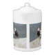 It was great to be able to be creative with my own pictures, and add fonts and other options Zazzle makes available to make my gift personal. The teapot became a special anniversary keepsake my brother and his wife raved about. Just the way I ordered it. I probably should have made the lettering a little darker, or white to stand out against the sky in the photos, but it turned out well.