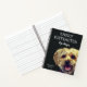 This silly personalized notebook features a posterized artistic rendition of an adorable Shorkie (Shih Tzu & Yorkshire Terrier) over a custom color background (shown in muted black). The text reads, "Easily Distracted by Dogs," along with a text template for personalization.