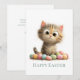 Celebrate Easter with a smile using this funny flat Easter greeting card featuring a wide-eyed kitten surrounded by colorful Easter eggs.