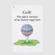 The golf towel exceeded my expectations! My husband actually approved of it! He liked the picture quality, thickness and overall usefulness of the golf towel I ordered to commemorate his lowest ever golf score. He liked it so well that I ordered 8 more towels with photos of his home golf course. Each one of the eight has the name of one of his golf group members. I will give them as party favors at my husband's 70th birthday party later this year. The different names were easy to add because the Zazzle template is so very easy to use. The colors were bright and authentic in all 9 of the towels that I made. The one of the 9 that I ordered has come out of the wash and line dry looking great.