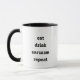 Funny sarcasm mug that has a customizable quote in typography that says simply eat drink sarcasm repeat. It is in clean black and white. Great gift for sarcastic sister, brother, coworker or best friend. Please Note!: If you change the text on one side, it doesn't change the text on the other side, so you must change it there too, if that is what you want.