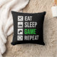 Funny eat sleep game repeat word art Gamer Throw Pillow
