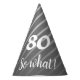 Funny and elegant gray stripe pattern man 80th birthday party hat. Inspirational text 80 so what is a white script and is a perfect party hat for a man celebrating his 80th birthday and has a sense for humor. The design has an elegant stripe pattern in grey colors and is perfect for a man`s 80th birthday party. You can change the age number if you want.