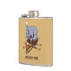 A cute cowboy elephant on a vinyl wrapped hip flask. Use "Personalize this template" to tweak the "EMERGENCY BOOZE" text and create a unique, customized gift. Featuring a funny elephant who's a bit too heavy for his chestnut horse. Saying 'howdy' in the western style by tipping his ten gallon hat, in leather chaps and a red kerchief. A cartoon for wild west and cowboy fans.