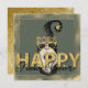 Cute elf design New Year's Flat Greeting Card with reverse side gold faux glitter background. Stylish font typography text can be easily customized with your own brief message. A fun card to herald in 2022.