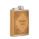 A vinyl wrapped hip flask with an abstract floral border. Use "Personalize this text" to change the "Emergency Booze" text and create a unique, customized gift. Add your own text to this item with my border design inspired by Mughal and Persian ornament. Geometric and floral elements include a stylized lotus bud, surrounded by curling, leafy tendrils and decorated with hand drawn shapes.