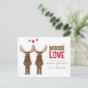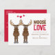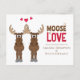 Cute Whimsical Moose saying "it moose be love". This design features engagement cute whimsical fun funny invitations, perfect for wedding engaged couple celebration celebrate get together, a humor moose animal heart love, it moose be love quote, a creative unique cool typography font, trendy stylish modern light style, couple husband wife, red cartoon graphic illustration hearts, cute engagement budget postcard