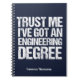 Trust Me I've Got an Engineering Degree. A graduation humor notebook gift for a funny engineer after they graduate college or university. Customize with your name or other text.