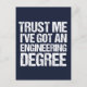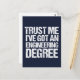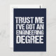 Trust Me I've Got an Engineering Degree. A graduation humor postcard in navy blue for a funny engineer after they graduate college or university.