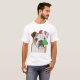 This funny Christmas Tee Shirt, features a portrait of an English Bulldog, wearing a festive hat, and Christmas tree ornament earrings.