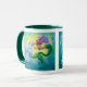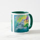 Funny polar bear mermaid coffee mugs. A cute fantasy mermaid steals a kiss from a very surprised polar bear. Mug form the fantasy art painting "Mermaid's Polar Bear Kiss" by Sue Halstenberg.