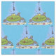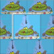 Funny fat hungry green fish fishing cartoon fabric